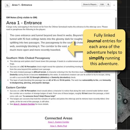 The following day a group of neighboring farmers found the path the creatures had taken and discovered the entrance to a cave deep in the woods that must be the spiders home.