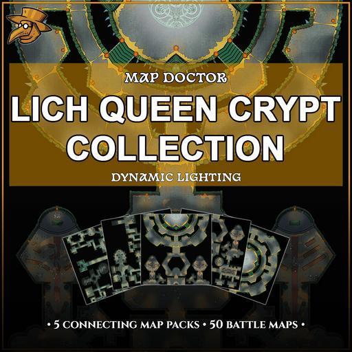 This is Lich Queen Crypt Collection in fine apparel, pre-configured with walls, doors, and dynamic lighting to maximize the gaming and adventuring experience!