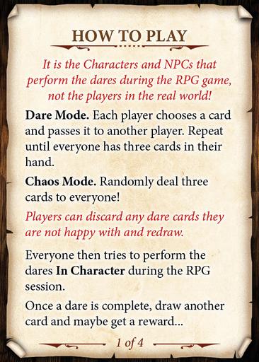 Includes 50 dungeon dare cards and 4 rule cards.