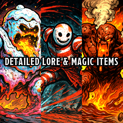 Thirty original holiday artifacts and enchanted relics, from humble charms to legendary wonders of divine power. Discover cursed ornaments, sacred gifts, and instruments of judgment, each designed to reward kindness or punish greed. Items range in rarity from Common to Christmas Artifact.