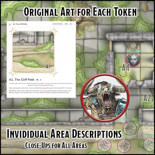 The first place to explore is a ruined fort where the tomb's entrance is located. It was reclaimed long ago by tree-fairies that languish in the blighting influence of the prophet's awakening. The fey beings offer a mighty deal to the characters. In exchange for their help in destroying the undead prophet, the fairies offer to lend a fabled blade to their cause. Are the characters resourceful enough to endure the challenges of this adventure?