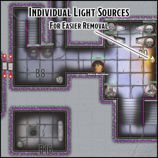 - Dynamic Lighting. The dungeon map pages of this product have been optimized with Dynamic Lighting features, wall delimitation, and light sources. Tokens for light sources (dim, regular, sunlight) are also included (requires plus/pro subscription).