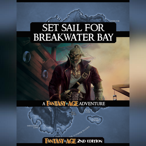 Set Sail for Breakwater Bay! features the introductory adventure, as well as the Breakwater chapter found in the Fantasy AGE Core Rulebook.