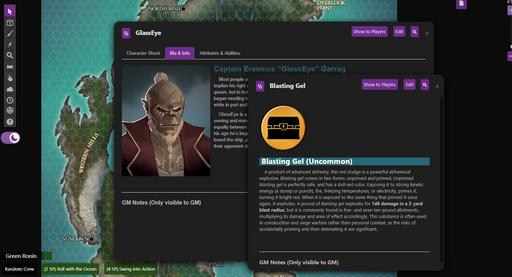 This title features Map Pins, which allow GMs to quickly annotate maps with secret information, display useful notes to players, and create moments of discovery! Map Pins are available in non-Legacy games only. Any pin-related bugs encountered may be reported using the “report a bug” dropdown in the GM Hamburger Menu in-VTT.