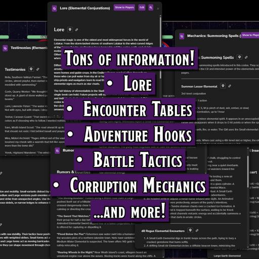 This codex offers full lore, mechanics, and monster stat blocks for summoned elementals and their construct kin.