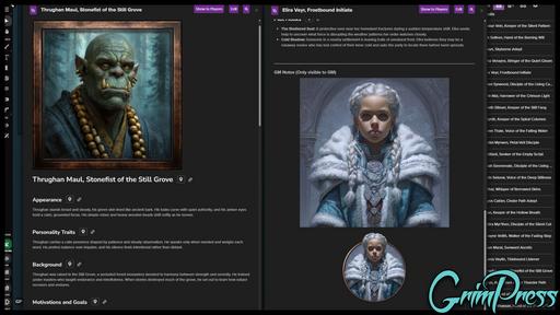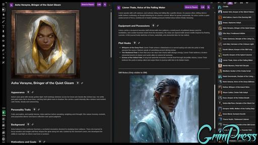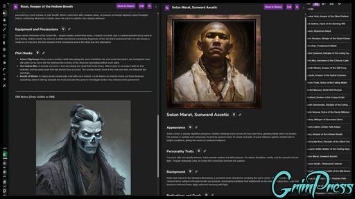 - Detailed NPC Descriptions, including: Appearance, Personality Traits, Background, Motivations, Abilities, and Alignment