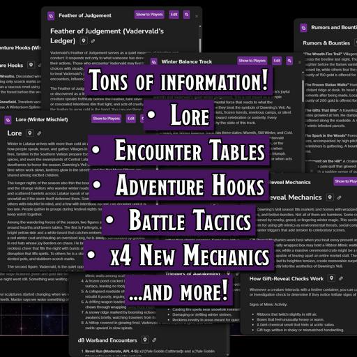Winter settles over Latakar as it always does. Fires burn brighter against the cold, lanterns glow longer in the streets, and familiar traditions return as Dawning’s Veil draws near. Beneath the celebrations, something stirs. Snow shifts where no wind blows. Gifts twitch beneath careful wrapping. Laughter echoes too loudly in places it should not. In the quiet between songs, winter watches.