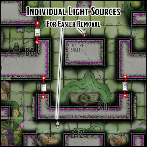 - Dynamic Lighting. The dungeon map pages of this product have been optimized with Dynamic Lighting features, wall delimitation, and light sources. Tokens for light sources (dim, regular, sunlight) are also included (requires plus/pro subscription).