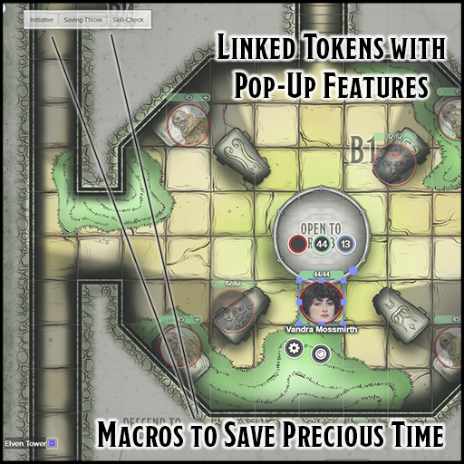 - One-Click Macros. Run faster combat sessions with one-click macros. Simply select a token and watch as macros for core features pop up. The macros auto-roll initiative, skill checks, and saving throws for characters.