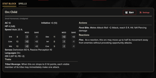 Orc Child (CR 0): Noncombatant youth. Used to establish stakes, consequences, or protected groups.