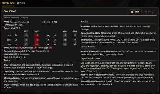 Orc Chief (CR 8): ribal leaders who command and coordinate other orcs, excelling when supported by allies.