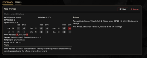 Orc Worker (CR 1/4): Able-bodied orcs accustomed to hard labor. They can defend themselves but lack formal combat training.