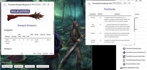 As a bonus for the Roll20, this edition of the Modern AGE Game Master’s Kit also includes the following Threefold content