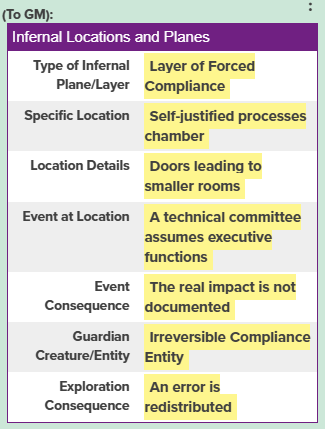 Defines entire infernal domains, each with a clear bureaucratic purpose: processing, validation, containment, arbitration, or normalization.