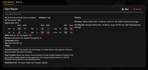 Ogre Reaver (CR 3): Hardened raider trusted to enforce clan dominance, more controlled than a brute but still driven by pride and territorial fury.