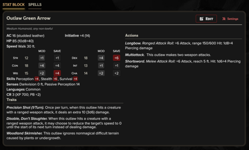 Outlaw Green Arrow (CR 3): Precise archer who disables officers and mounts rather than slaughtering common folk.