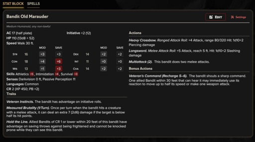 Bandit Camp Boss (CR 3): Dominant camp leader who rules through personal strength, threat, and control of the loot.