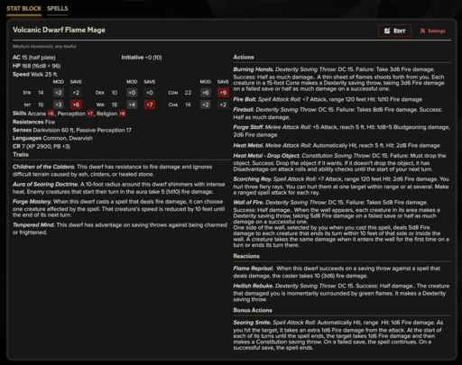 Volcanic Dwarf Forgebinder (CR 5): Master artisan-warrior who commands living flame within the forge halls, shaping both weapons and battlefield hazards.