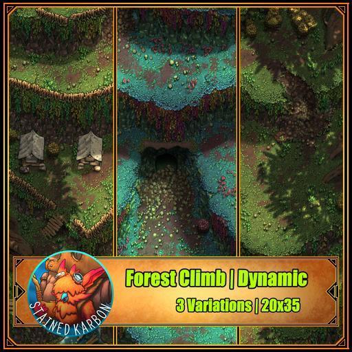 This is a pack of forest cliff battlemaps with a fey and camp variants!