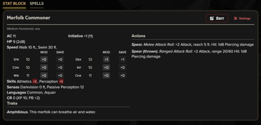 Merfolk Commoner CR(0) Baseline adult citizens: pearl divers, kelp farmers, artisans, and laborers.