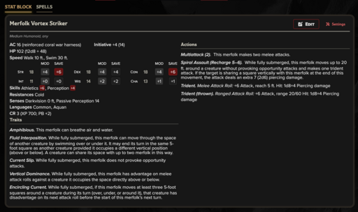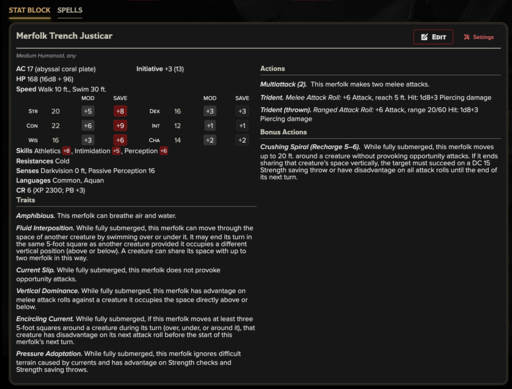Merfolk Abyssal Arcanist CR(5) High hydromancers who reshape underwater terrain into controlled combat zones.