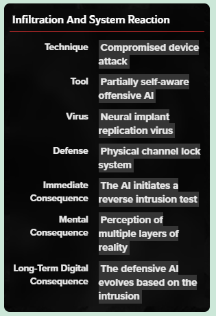 Adaptive ICE constructs, corporate watchdog AIs, biometric lockdown cascades, predictive counter-hack protocols.