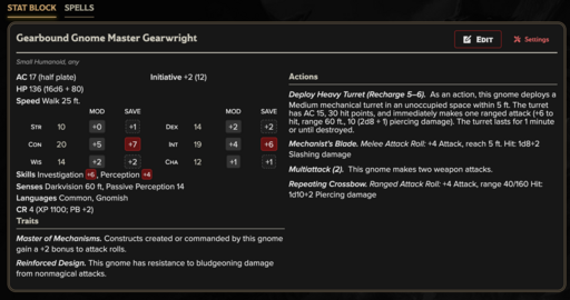 Gearbound Gnome Master Gearwright — CR 4