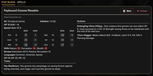 Feybound Gnome Briar Seer — CR 3