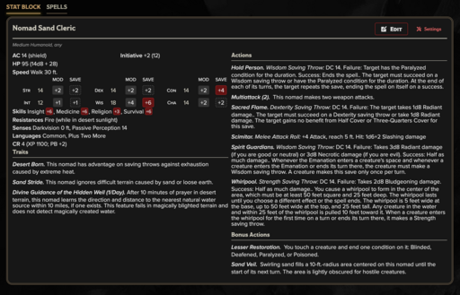 Nomad Sand Cleric — CR 4