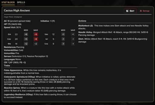 Cactus High Ancient (CR 7): Ancient cactus colossus capable of devastating enemies with explosive storms of spines.