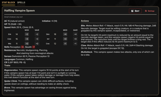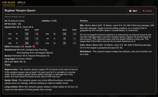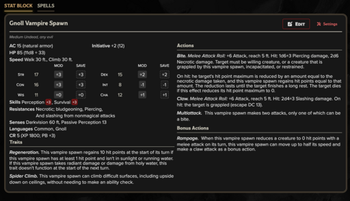 The intent of this product is mechanical preservation rather than escalation. Every creature in this book is built directly on the SRD vampire spawn chassis. Core abilities such as regeneration, spider climb, and life-draining bite remain unchanged. No variant increases the creature’s damage output, save DCs, or control effects. Instead, each variant retains one defining biological trait from its living form.