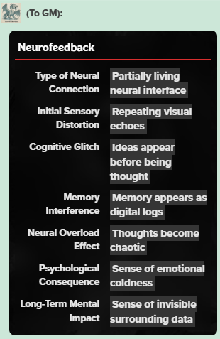 Set 4 generates the neurological and psychological consequences of linking a human brain directly to cyberspace through neural interfaces, implants, or experimental hacking rigs.