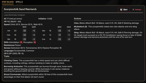 Scorpionfolk Sand Matriarch — CR 6
