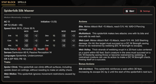 Spiderfolk Silk Weaver — CR 4