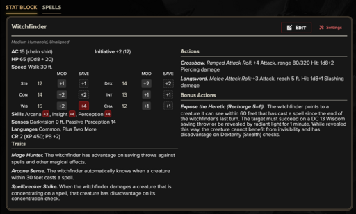 Arcane hunter trained to detect, expose, and suppress spellcasters operating outside sanctioned authority.