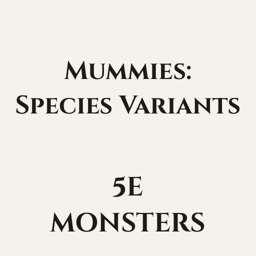 Mummies: Species Variants is a monster supplement for 5e that presents mummies as preserved remains of many different peoples rather than a single desert-bound archetype. Instead of treating mummies as culturally identical undead, this book explores how burial practices and physical heritage shape the undead that rise from ancient tombs.