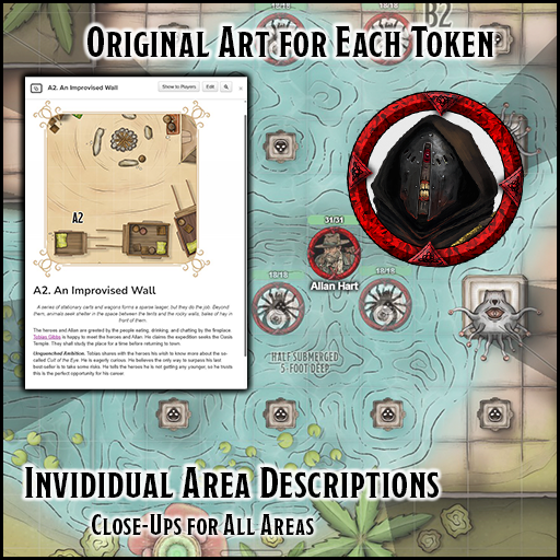 The adventurers must find the oasis in the Scalding Desert. They must solve the eons-old puzzle to reveal the location of the Cult of the Eye lair. By the time they arrive, unfortunately, the cult has finished casting their death-harnessing dark invocation.