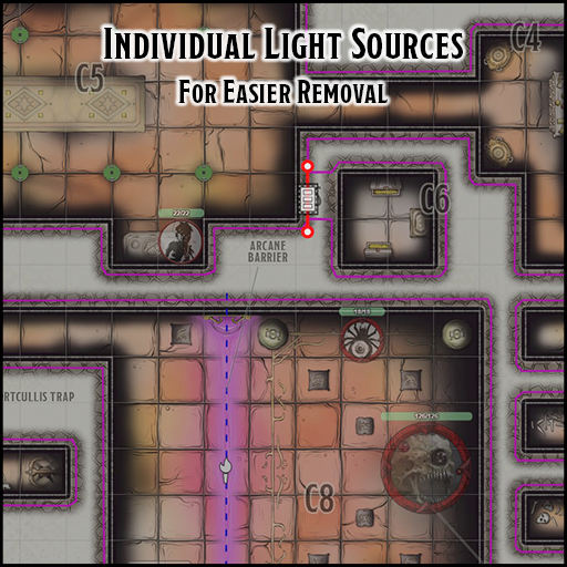 - Dynamic Lighting. The dungeon map-pages of this product have been optimized with Dynamic Lighting features, wall delimitation, and light sources. Tokens for light sources (dim, regular, sunlight) are also included (requires plus/pro subscription).