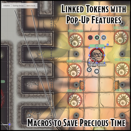 - One-Click Macros. Run faster combat sessions with one click macros. Simply select a token and watch as macros for core features pop up. The macros auto roll initiative, skill checks, and saving throws for characters.