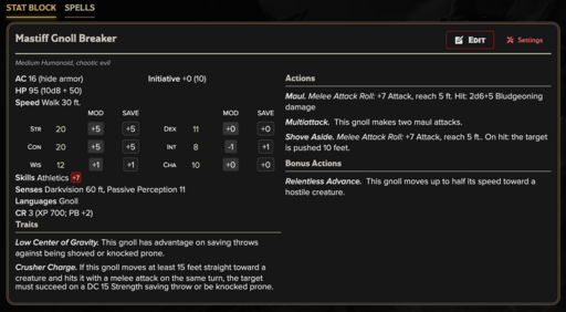 Mastiff Gnoll Breaker (CR 3): Veteran shock trooper responsible for smashing barricades and forcing open defensive positions.