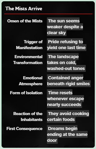 Set 2 defines how the curse first manifests through the mists and how reality itself begins to shift.