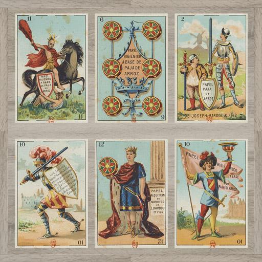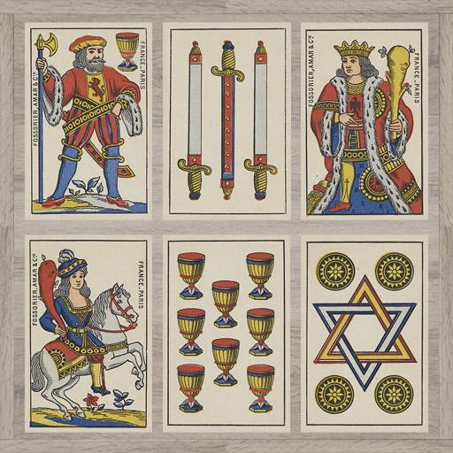 The illustrations on the playing cards are in the public domain. They are original decks from the early 19th century.