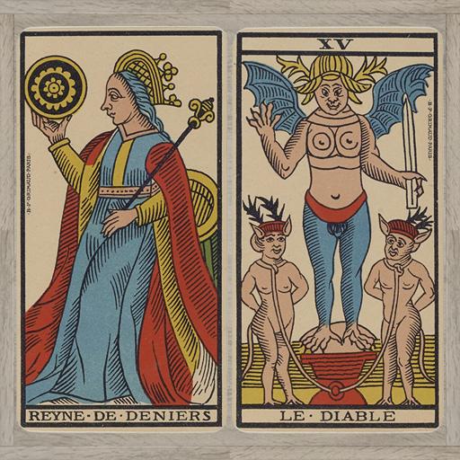 The illustrations on the playing cards are in the public domain. They are original deck were edited in the late 1800s.