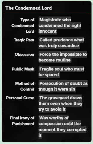 Set 4 creates the condemned lord who stands at the center of the domain’s tragedy.