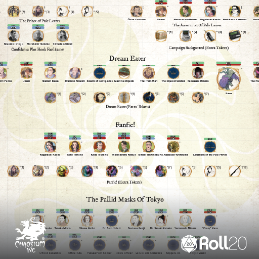 - The Pallid Masks of Tokyo: The corpse of a gang member is discovered in Shinjuku—but its face is devoid of all features. The investigators are drawn into the mystery and must attempt to find the source of, and stop, a rash of faceless gangsters across the city.