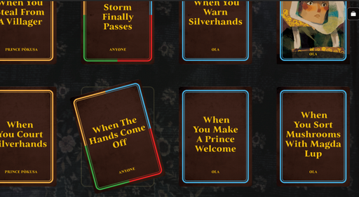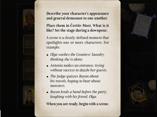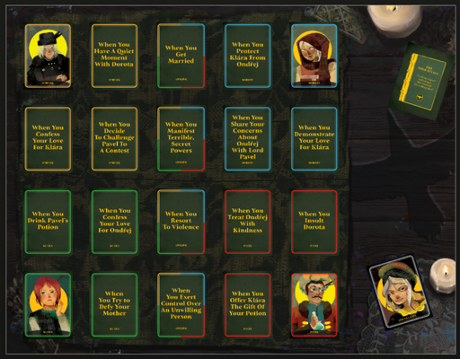 Zhenya’s Wonder Tales is a set of 6 card games retelling dark, Slavic-inspired fairy stories in 1-2 hours. Play a prince, a werewolf, an orphan, a monster hunter, and more to make difficult choices that drive characters towards uncertain endings.