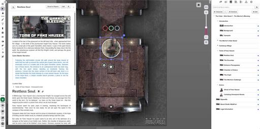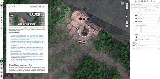 This title features Map Pins, which allow GMs to quickly annotate maps with secret information, display useful notes to players, and create moments of discovery! Map Pins are available in non-Legacy games only. Any pin-related bugs encountered may be reported using the “report a bug” dropdown in the GM Hamburger Menu in-VTT.