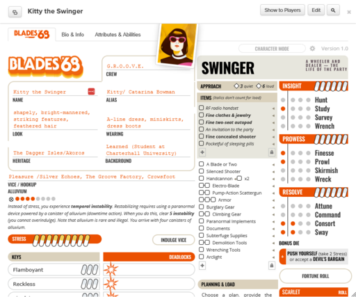 Blades '68 spins the timeline of Blades in the Dark 100 years forward and launches you into the radical, Swinging Sixties.