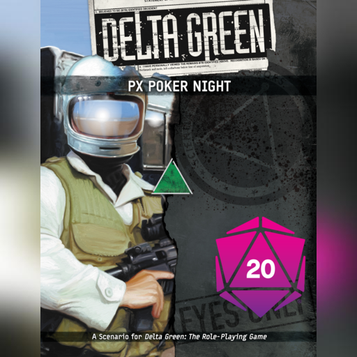 “PX Poker Night” is a scenario for Delta Green: The Role-Playing Game, available from Arc Dream Publishing. It includes six pregenerated characters who could become Delta Green “Friendlies” or Agents. If they make it through the night.