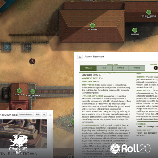 Roll20 uses cookies to improve your experience on our site. Cookies enable you to enjoy certain features, social sharing functionality, and tailor message and display ads to your interests on our site and others. They also help us understand how our site is being used. By continuing to use our site, you consent to our use of cookies. Update your cookie preferences .
